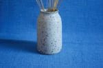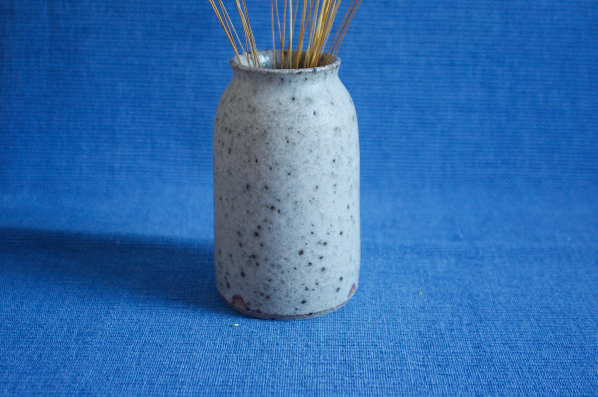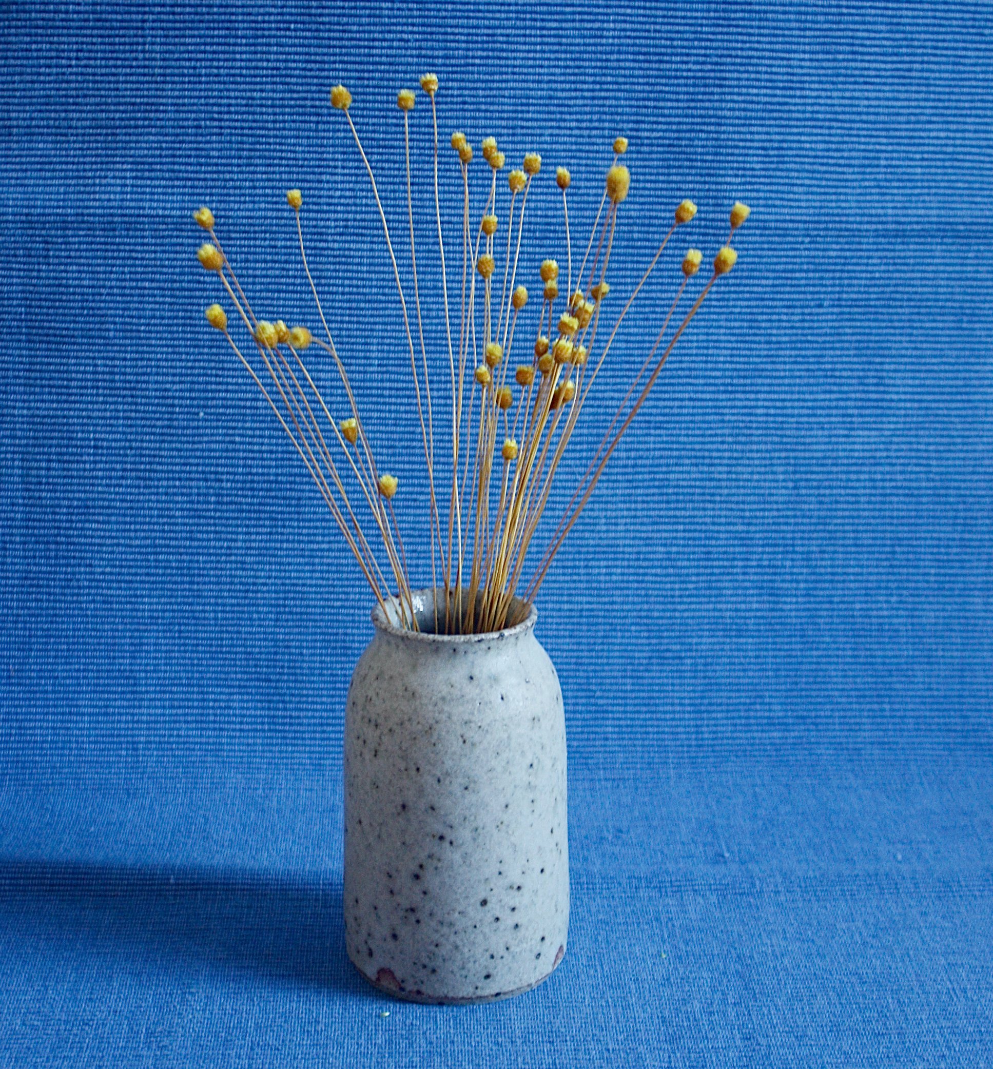 Wheel-thrown posy vase in a simple shape, glazed in a matt glaze on the outside and a white glossy glaze on the inside.